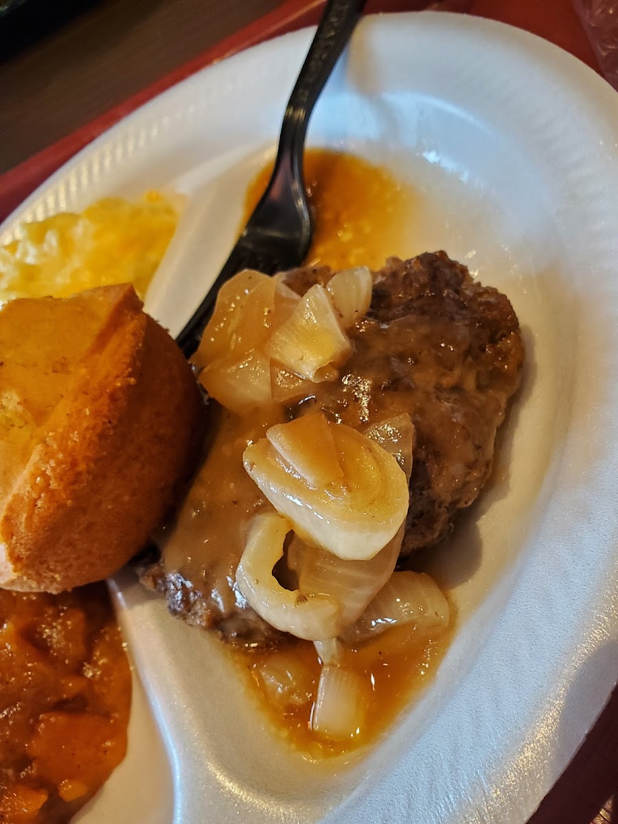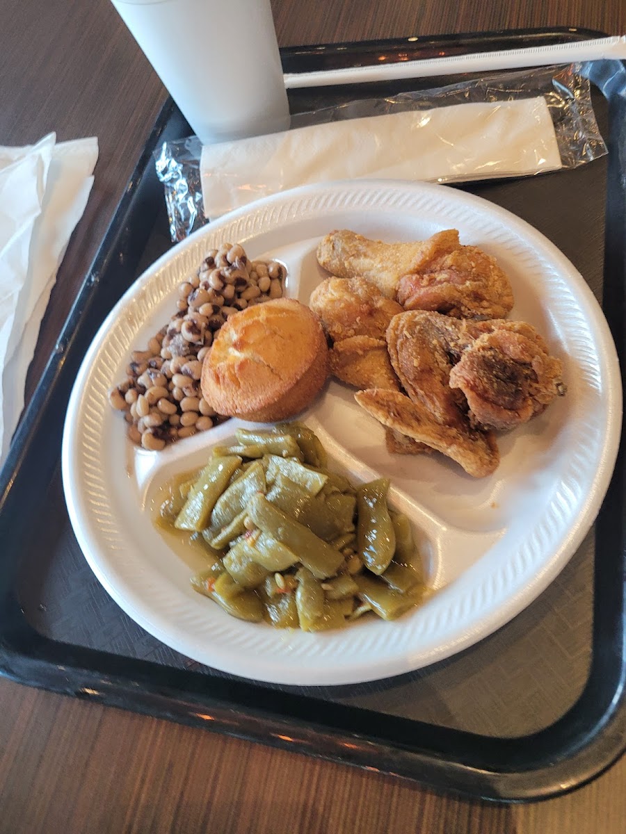 The menu reads like a greatest-hits list of Alabama comfort food. Fried chicken with a crackling crust, tender enough to pull apart with a fork. Meatloaf that tastes baked, not rushed. Collard greens cooked low and slow, rich without being heavy. One server explained their greens process in detail-smoked turkey instead of pork for depth, long simmer times, and no shortcuts. That attention shows. According to USDA food preparation research, longer low-heat cooking breaks down tough fibers and enhances mineral absorption, and you can taste the difference here.