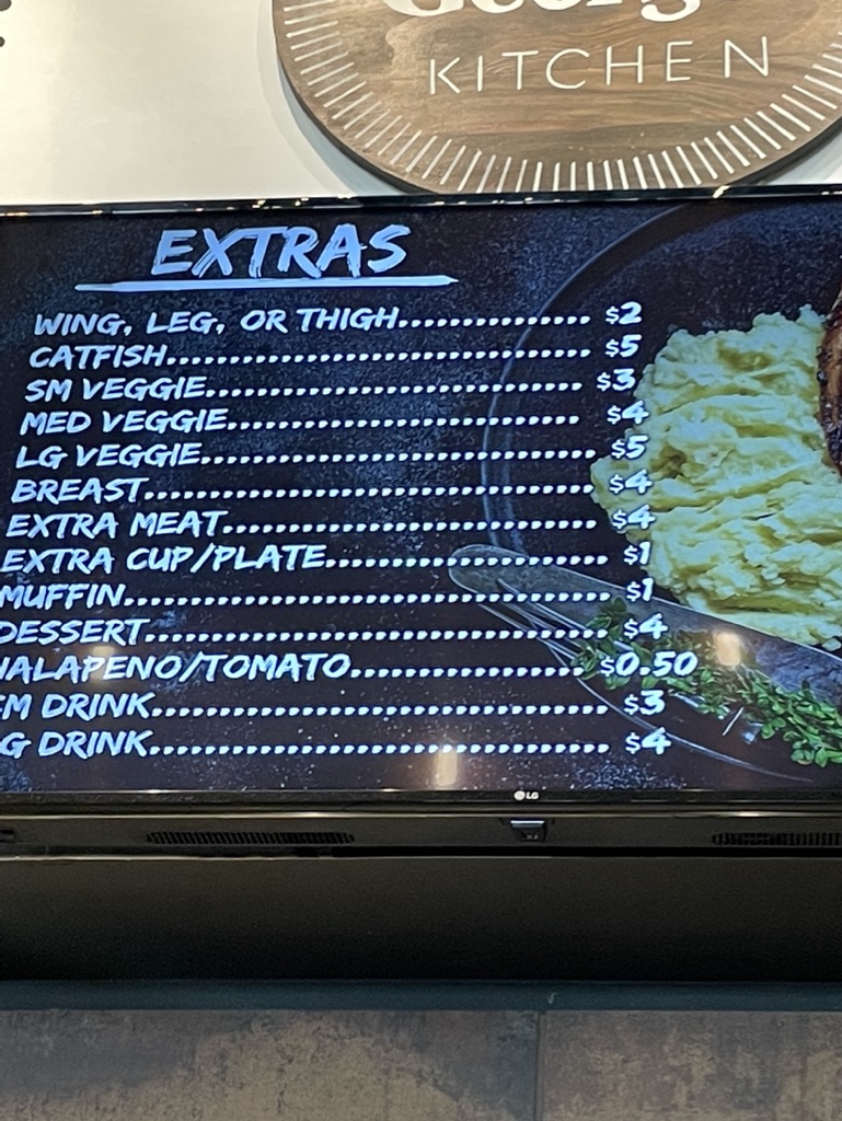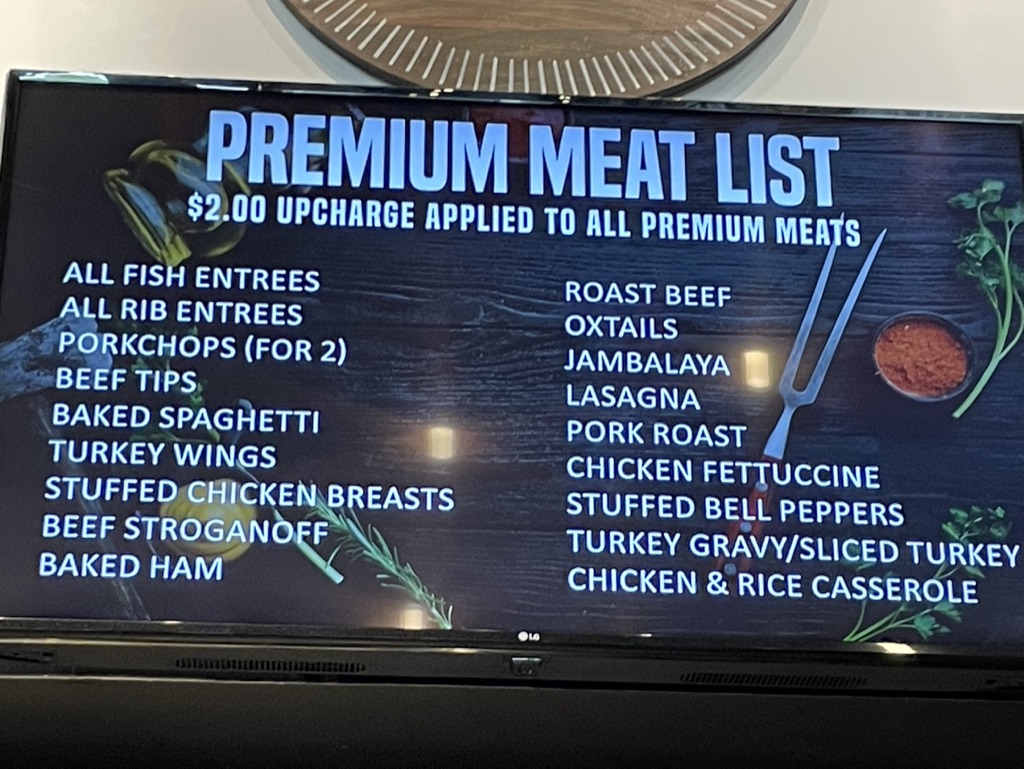 The 1 meat and 3 veggies plate consists of 1 meat selection and 3 of our vegetable options. This meal comes with bread and a beverage